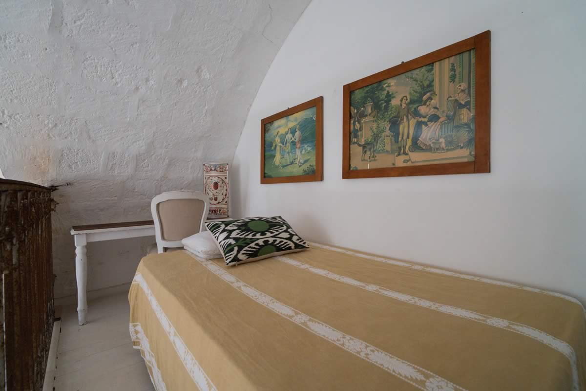 La stanza principale ospita un comodo letto matrimoniale, mentre la seconda camera custodisce una piccola alcova in muratura: una nicchia suggestiva, perfetta per due ragazzi fino a 14 anni.